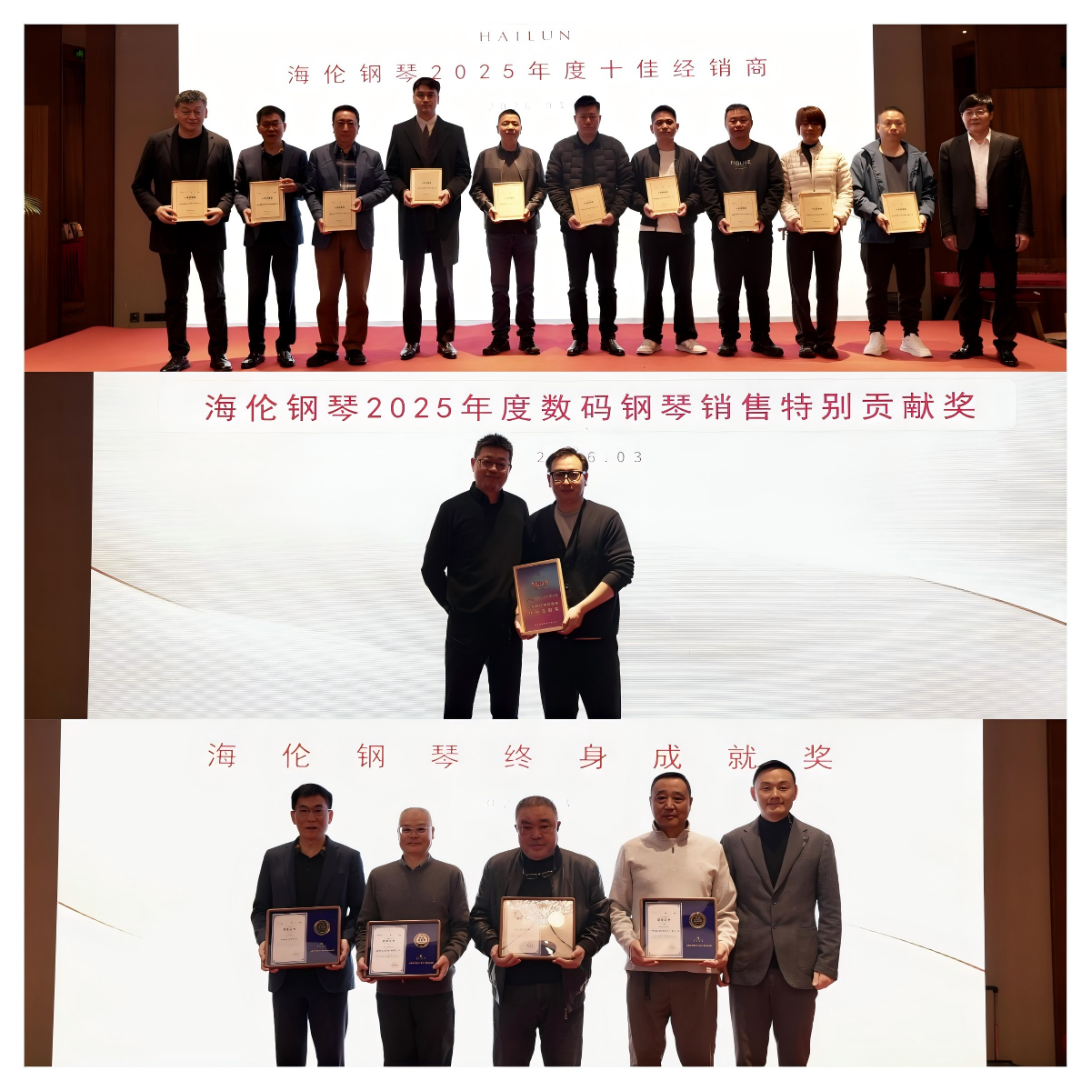 大會(huì)特設(shè)莊重的頒獎(jiǎng)環(huán)節(jié),對(duì)過(guò)去一年里與海倫鋼琴并肩前行、成績(jī)斐然的合作伙伴予以重磅表彰?,F(xiàn)場(chǎng)依次為10家十佳經(jīng)銷(xiāo)商、4家終身成就獎(jiǎng)獲得者、1家數(shù)碼鋼琴特別貢獻(xiàn)獎(jiǎng)獲得者頒發(fā)榮譽(yù),當(dāng)獲獎(jiǎng)代表登臺(tái)接過(guò)獎(jiǎng)杯,臺(tái)下響起經(jīng)久不息的掌聲。這份榮譽(yù)不僅是對(duì)伙伴們過(guò)往業(yè)績(jī)的肯定,更是對(duì)他們長(zhǎng)期深耕市場(chǎng)、與品牌同呼吸共命運(yùn)的最高致敬,也激勵(lì)著全體海倫人以榜樣為力量,攜手再攀高峰。