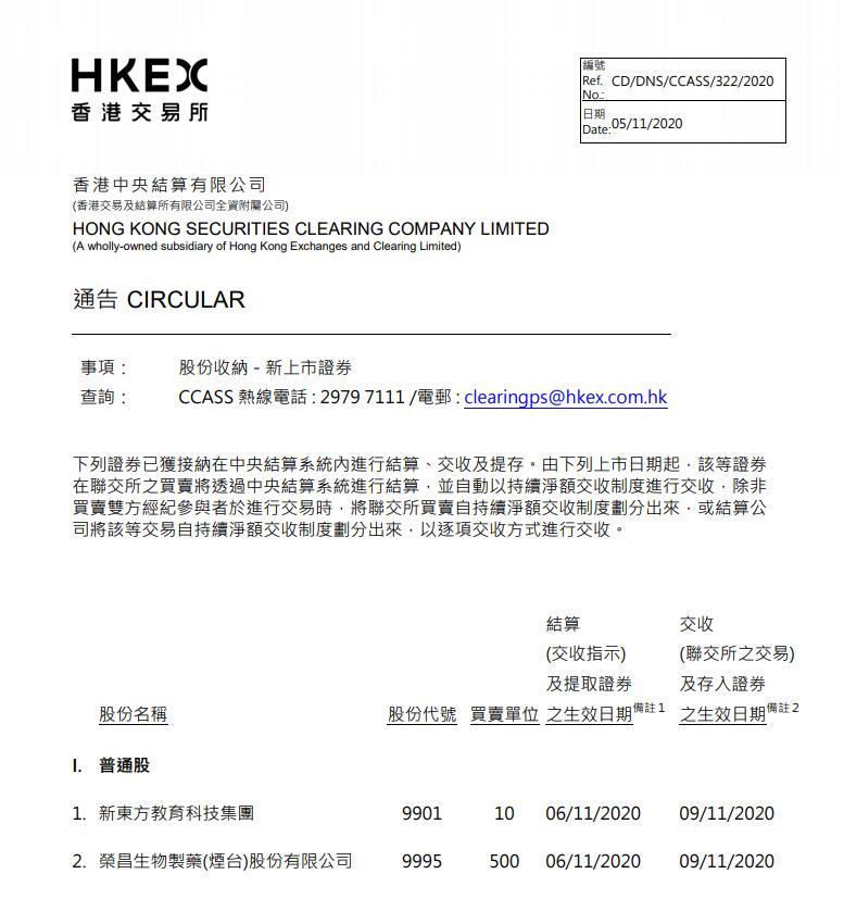 5日,港交所官網(wǎng)發(fā)布通告稱,榮昌生物制藥(煙臺)股份有限公司已獲接納在中央結(jié)算系統(tǒng)內(nèi)進行結(jié)算、交收及提存。