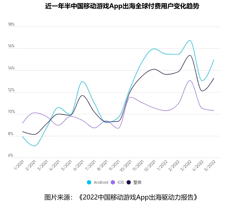 雖然出海過程中受到疫情效應消退、全球經(jīng)濟環(huán)境不確定性增加、中國國內游戲防沉迷政策、版號收緊等因素影響,不少國內游戲廠商出海步伐相對放緩,但是數(shù)據(jù)也依舊不乏亮點。截至2022年第二季度,中國游戲出海App的凈營業(yè)收入(NOI)與去年同期相比下降10%,但付費用戶比例卻比去年同期提升34%。在很大程度上說明,國內游戲廠商的注意力正從追求用戶數(shù)量向注重用戶質量上轉移。