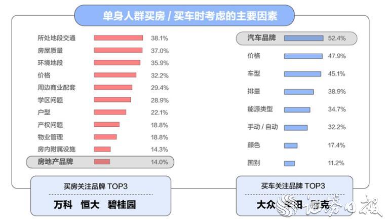 隨著我國(guó)結(jié)婚率逐年下降,單身群體越來(lái)越龐大。國(guó)家統(tǒng)計(jì)局相關(guān)數(shù)據(jù)顯示,我國(guó)單身人口已達(dá)2.4億,其中85后、90后是單身青年群體的主力軍。他們的居行消費(fèi)觀念呈現(xiàn)出哪些新特點(diǎn)?更傾向于先買(mǎi)房還是先買(mǎi)車(chē)?