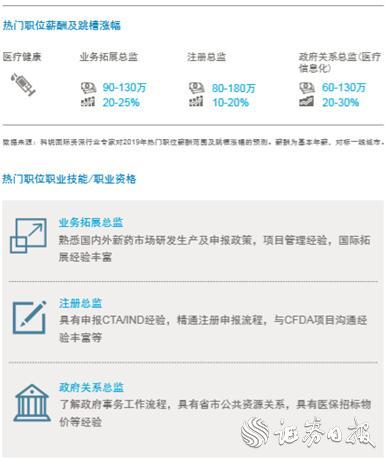 本報訊 近期,帶量采購“4+7”試點正式開標(biāo),行業(yè)專家表示,這將對原研藥、仿制藥、創(chuàng)新藥帶來不同程度的影響。隨著這種市場和政策環(huán)境的變化,醫(yī)藥企業(yè)在人才結(jié)構(gòu)的配比方面也將產(chǎn)生相應(yīng)變化。日前,科銳國際發(fā)布了《2019年人才市場洞察及薪酬指南——醫(yī)療健康行業(yè)》,最新披露了醫(yī)療健康行業(yè)的人才流動全貌和總體薪酬水平,前瞻性地解讀了2019年我國醫(yī)療健康行業(yè)面臨的人才缺口、薪資水平及流動趨勢。