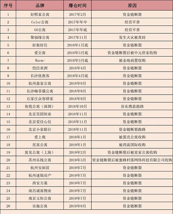 ▲網(wǎng)絡(luò)上公開的國(guó)內(nèi)已爆倉(cāng)長(zhǎng)租公寓品牌