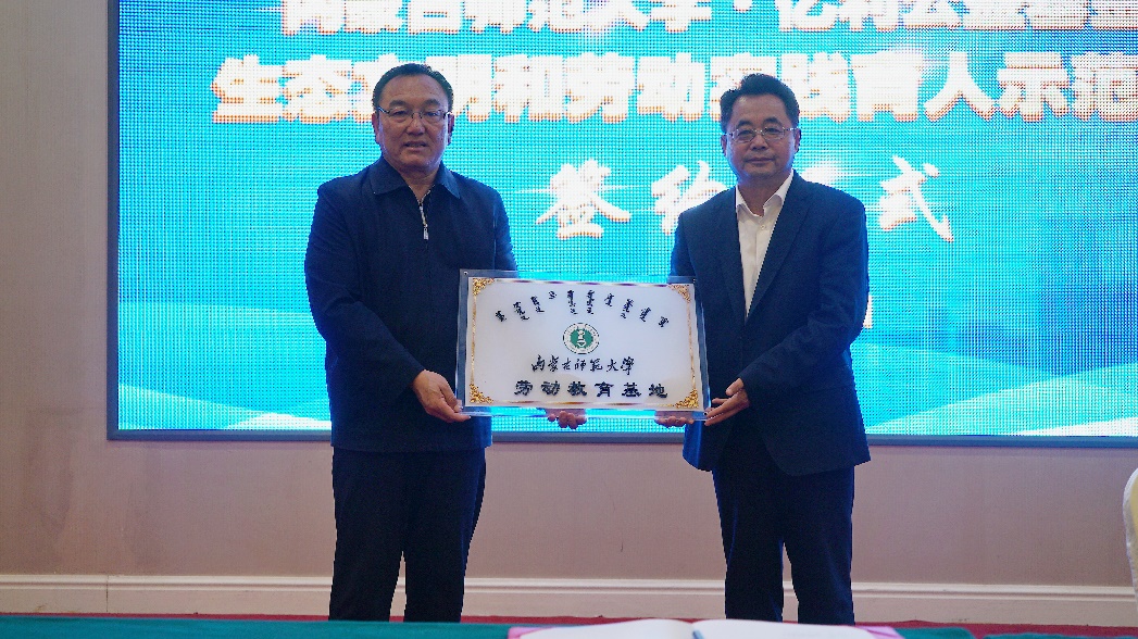 圖為內(nèi)蒙古師范大學與億利簽署《共建生態(tài)文明和勞動實踐育人示范基地合作協(xié)議書》