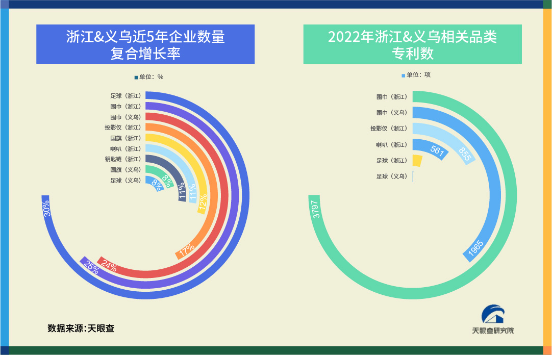 近日,天眼查深度盤點“卡塔爾世界杯隱藏的中國力量”,基于平臺收錄的超3億社會實體信息及AI大數(shù)據(jù)分析能力,全面呈現(xiàn)與世界杯、各國球隊官方合作的中國企業(yè),回顧中國基建在卡塔爾的扎根足跡,展現(xiàn)義烏中小企業(yè)對世界杯周邊產(chǎn)品市場做出的貢獻。從行業(yè)發(fā)展、市場規(guī)模及創(chuàng)新專利等情況,洞察“中國制造”的世界機遇。