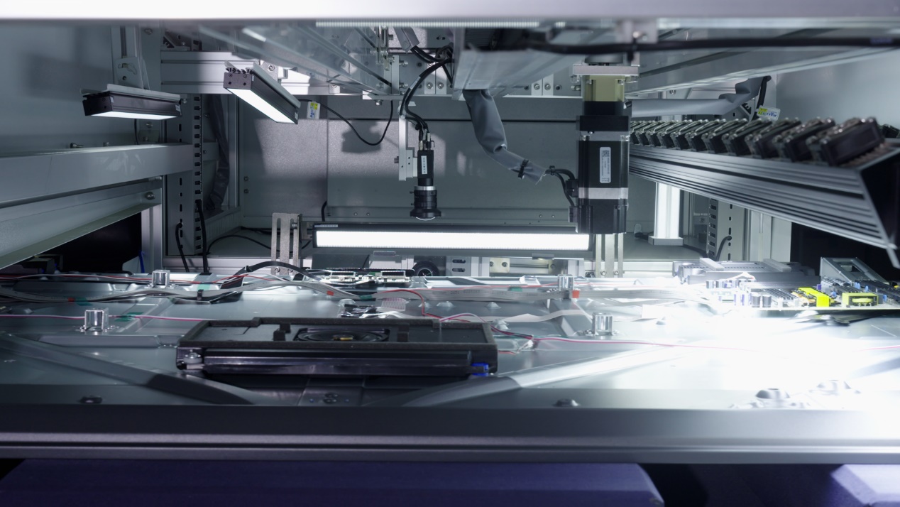 在智造環(huán)節(jié),AI帶來的效率和質量提升同樣震撼。海信打造了行業(yè)領先的第三代數(shù)字化高效電視生產線,集成了25項海信自研的首臺套自動化設備,其中11項為業(yè)內首創(chuàng)。