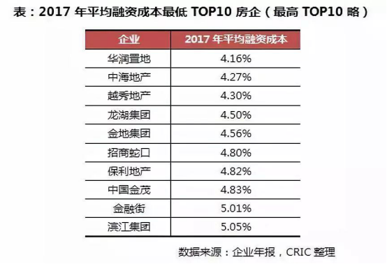 借此,2017年龍湖的平均借貸成本進(jìn)一步降低至年利率4.5%,平均貸款年限5.92年,達(dá)到歷史最優(yōu)水平。在2017年平均融資成本最低的民營(yíng)房企中,龍湖位居第一。