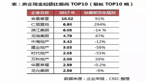 截至2017年底,龍湖現(xiàn)金持有量為267.6億元,現(xiàn)金短債比為4.79,現(xiàn)金較充裕,可完全覆蓋短期債務(wù),在現(xiàn)金短債比最高的千億房企中,排名第一。