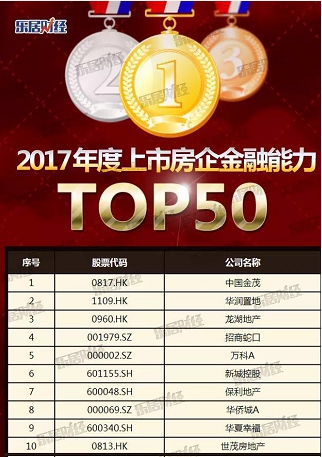 2018年5月23日,中國(guó)房地產(chǎn)業(yè)協(xié)會(huì)金融專(zhuān)業(yè)委員會(huì)舉辦“2018中國(guó)房地產(chǎn)金融論壇”,會(huì)上發(fā)布中國(guó)房地產(chǎn)企業(yè)金融能力評(píng)價(jià)研究成果及《2017上市房企金融能力TOP50》。