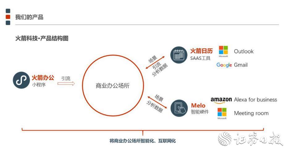 目前,火箭科技的產(chǎn)品矩陣包括依托微信小程序的靈活工位預(yù)訂平臺(tái)——火箭辦公、輕量化辦公工具——火箭日歷以及以Melo智能會(huì)議系統(tǒng)為代表的智能硬件與智慧化解決方案。