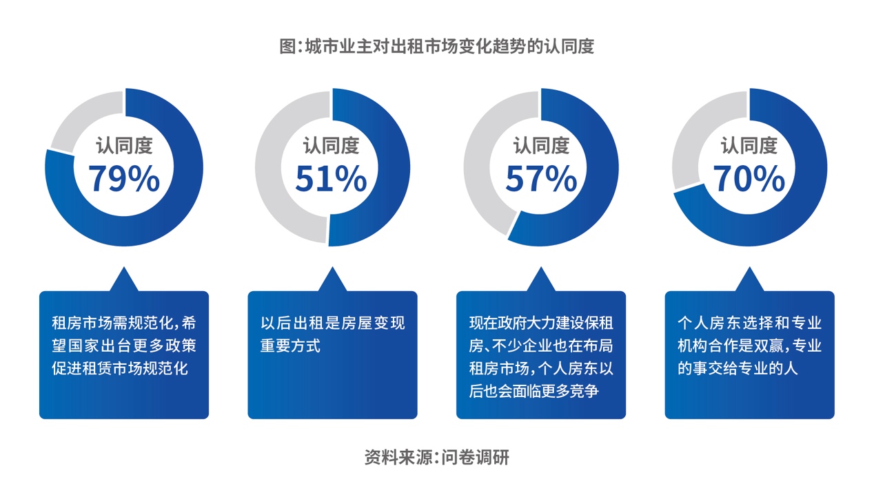 在城市業(yè)主看來,出租正成為房屋資產(chǎn)保值、提升房屋流通性和使用性增值的更優(yōu)方式?!端{(lán)皮書》數(shù)據(jù)顯示,有超5成業(yè)主認(rèn)為,現(xiàn)階段“出租是房屋變現(xiàn)的重要方式”。