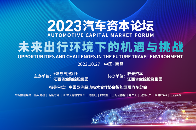 由《證券日報》社與江西省金融控股集團主辦、江西省金控投資集團與上海軒元私募基金管理有限公司協(xié)辦的"2023汽車資本論壇--未來出行環(huán)境下的機遇與挑戰(zhàn)"將于2023年10月27日在江西南昌舉辦...[詳細(xì)]