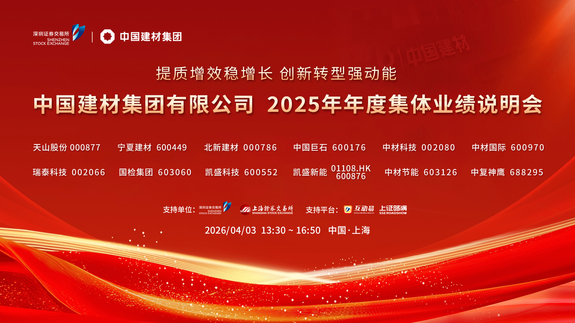 歡迎光臨證券日報網(wǎng)。中國建材集團(tuán)有限公司2025年年度集體業(yè)績說明會將于2026年4月3日13:30-17:00舉行。[詳細(xì)]