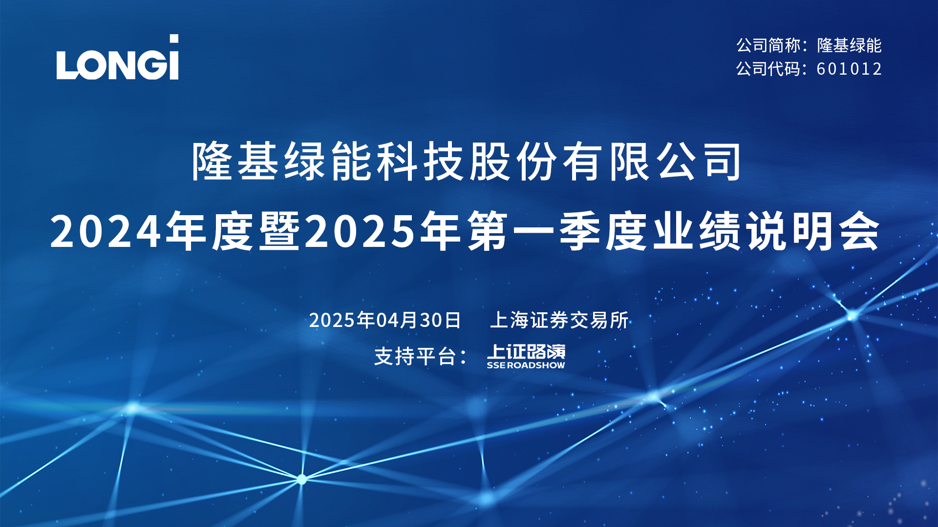 歡迎光臨證券日?qǐng)?bào)網(wǎng)。隆基綠能科技股份有限公司 2024年度暨2025年第一季度業(yè)績(jī)說(shuō)明會(huì)將于2025年4月30日(星期三)10:00 ~ 11:30舉行。[詳細(xì)]