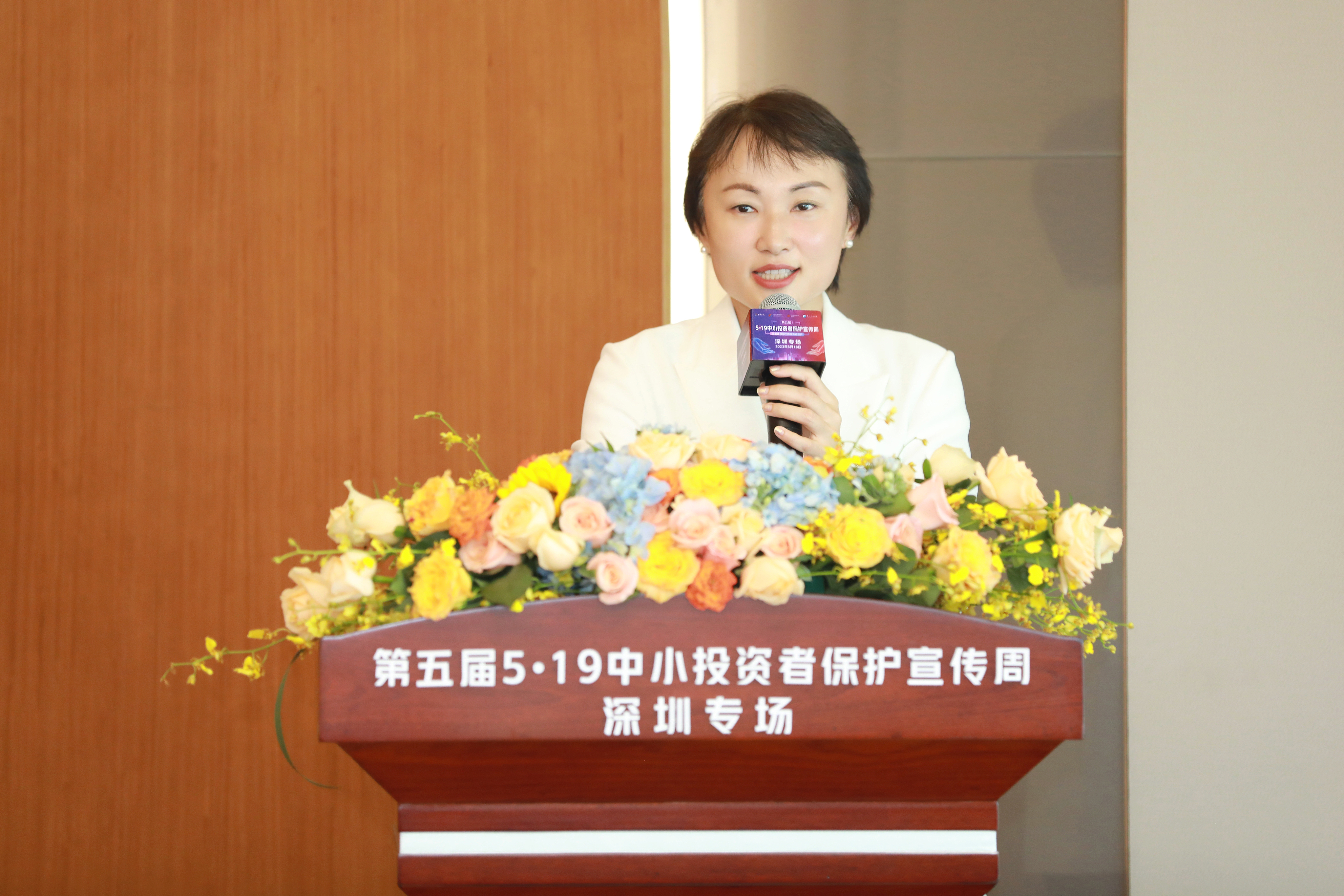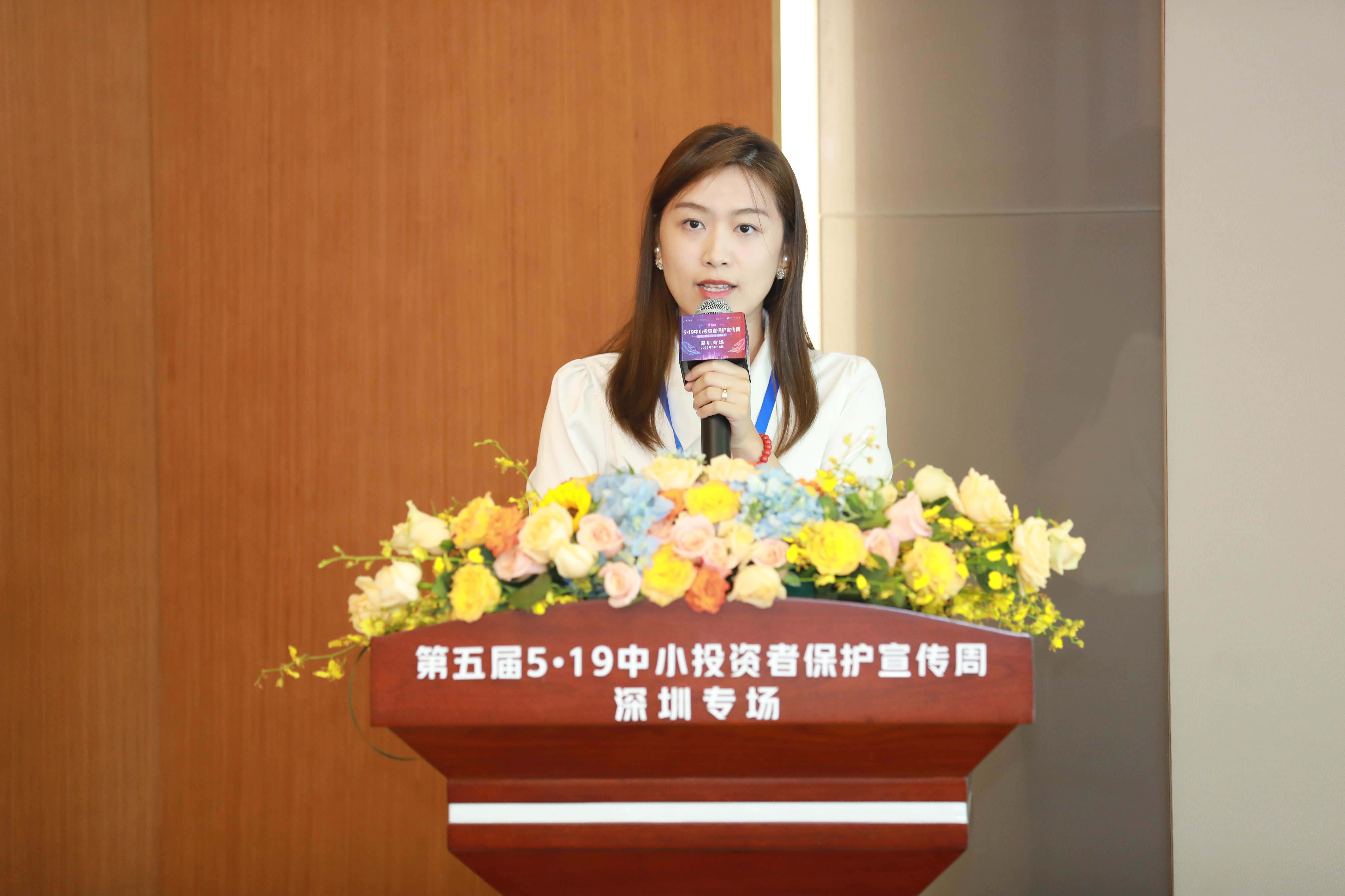 深證投資者服務(wù)中心綜合部負(fù)責(zé)人華韻西在活動(dòng)上發(fā)言