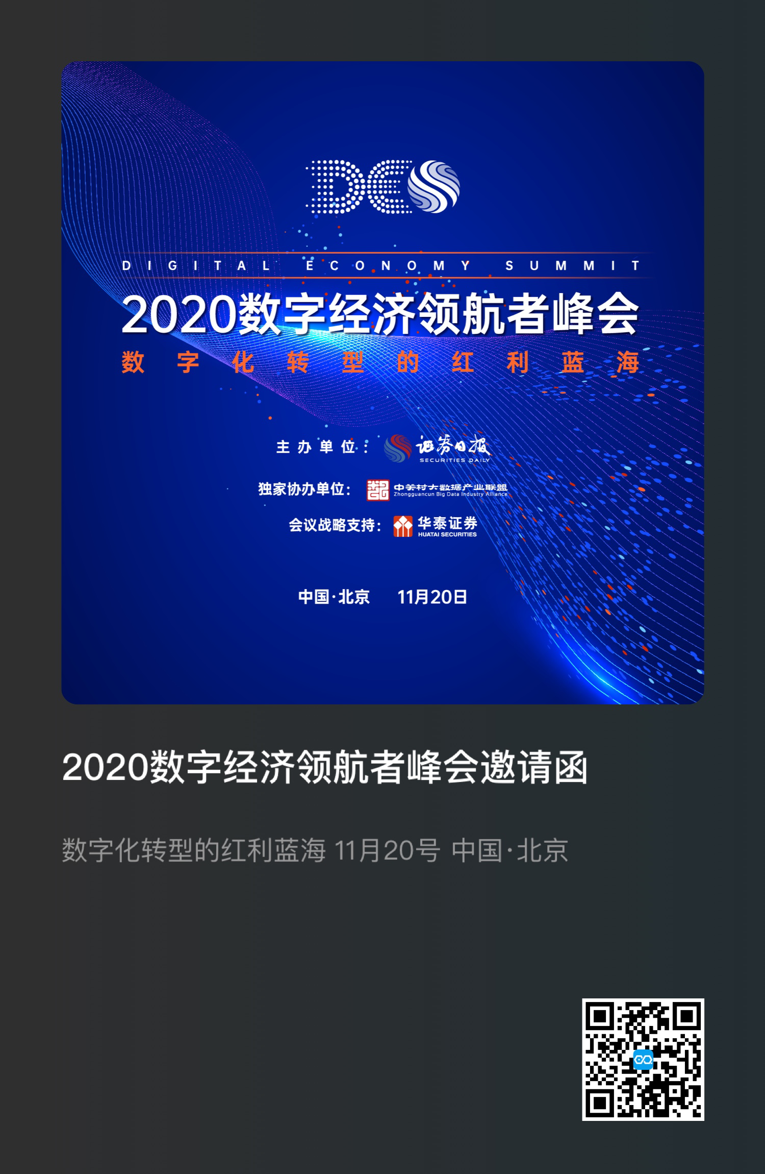 如是背景下,《證券日報(bào)》將于2020年11月20日在京舉辦“2020數(shù)字經(jīng)濟(jì)領(lǐng)航者峰會(huì)——數(shù)字化轉(zhuǎn)型的紅利藍(lán)海”。屆時(shí),來自監(jiān)管系統(tǒng)、上市公司、擬上市公司、金融機(jī)構(gòu)、中介機(jī)構(gòu)、經(jīng)濟(jì)學(xué)界的數(shù)百名代表將齊聚一堂,共議數(shù)字經(jīng)濟(jì)的發(fā)展方向。