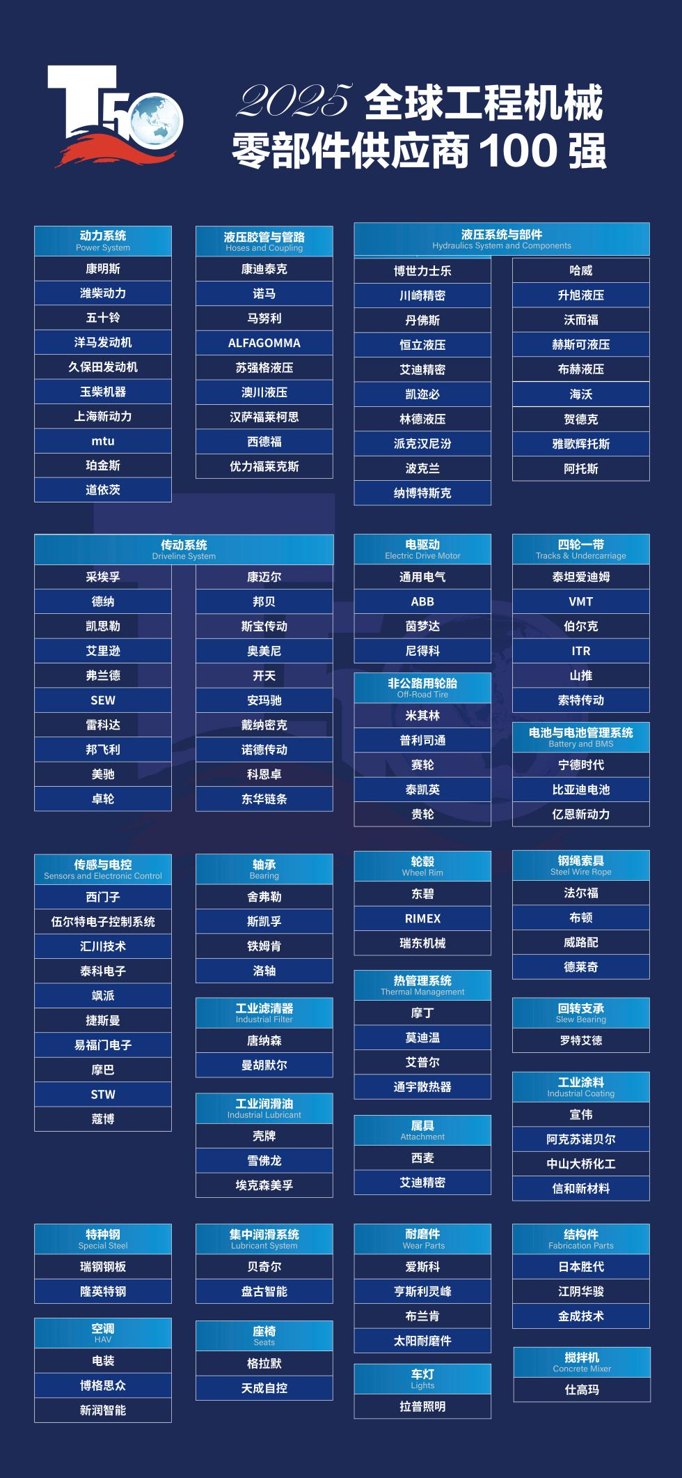 2025全球工程機(jī)械零部件供應(yīng)商100強(qiáng)