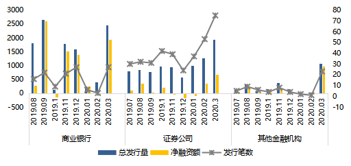 經(jīng)歷了2月份的低谷后,金融機(jī)構(gòu)金融債的發(fā)行在上個(gè)月開(kāi)始迎來(lái)“報(bào)復(fù)性”反彈,各券種發(fā)行均較為強(qiáng)勁。