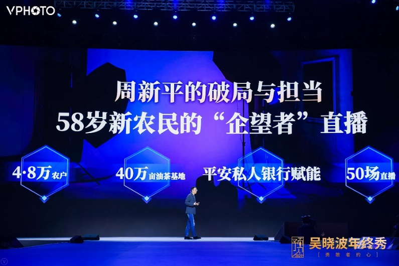 58歲的“新農(nóng)民”周新平是吳曉波故事里講述的主角之一,也是平安私人銀行企望者。2008年,他辭掉跨國(guó)公司中國(guó)區(qū)總裁,回到家鄉(xiāng)創(chuàng)辦大三湘茶油。12年間,周新平夫婦讓油茶花開(kāi)至漫山遍野,40萬(wàn)畝油茶基地,4.8萬(wàn)戶農(nóng)戶脫貧致富,實(shí)實(shí)在在地用油茶產(chǎn)業(yè)富了一方百姓。