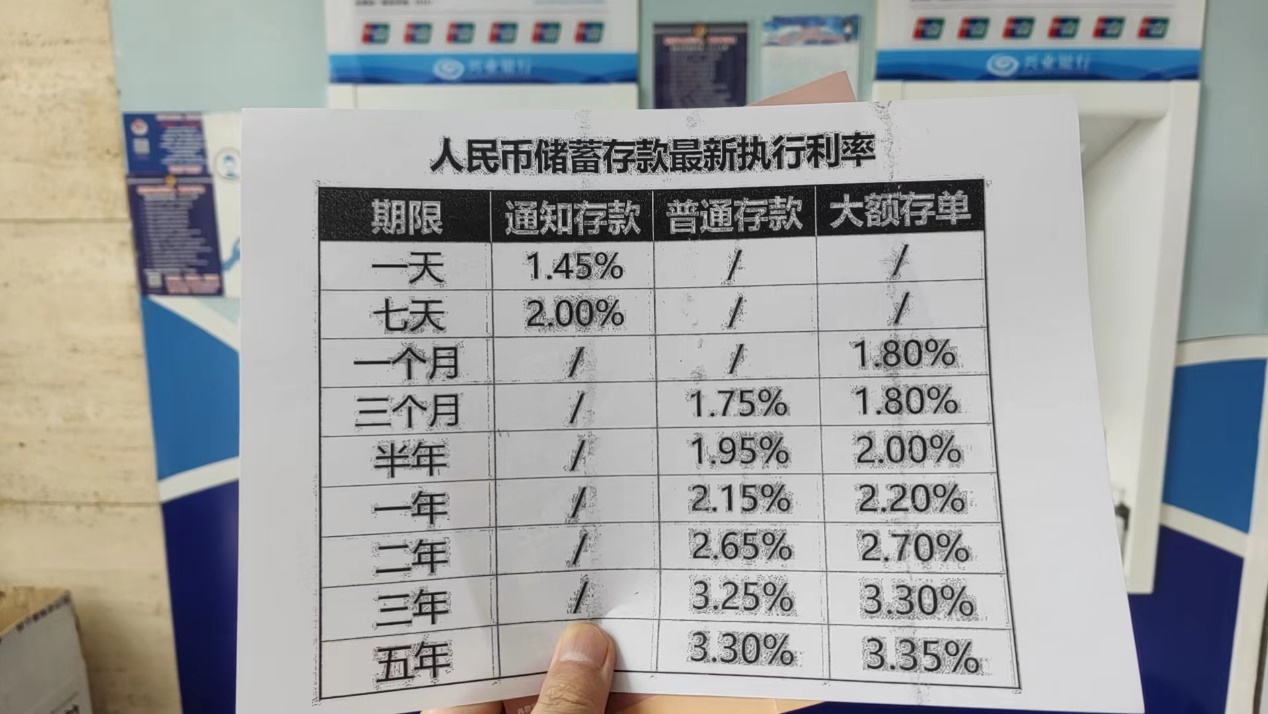 從其他5家國有大行來看,6月8日起,除活期存款利率調(diào)整之外,也都下調(diào)了三類整存整取存款利率,其中,兩年、三年和五年人民幣定期存款利率均調(diào)降至2.05%、2.45%、2.5%。