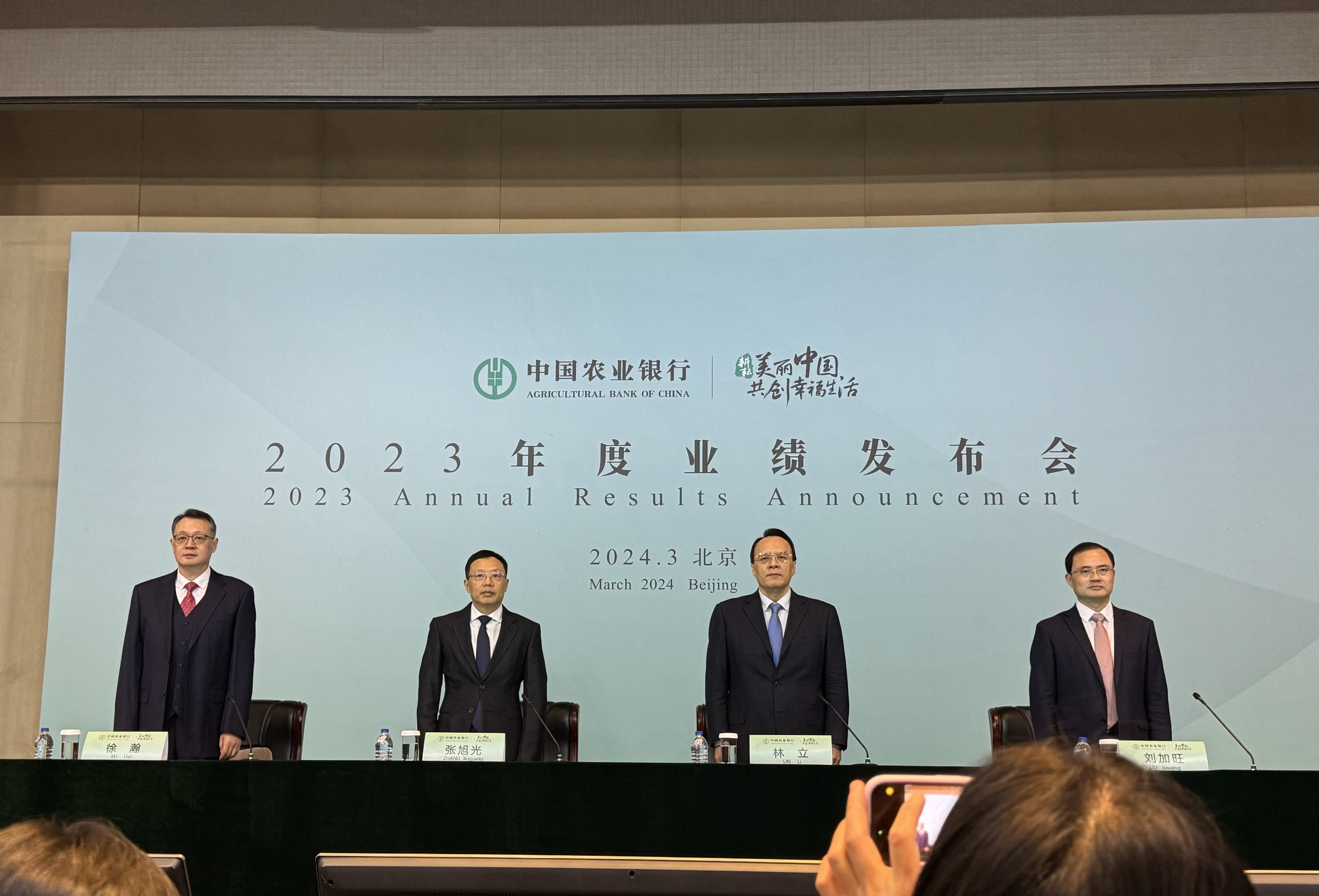3月28日下午,中國(guó)農(nóng)業(yè)銀行在北京、香港兩地同步召開(kāi)2023年度業(yè)績(jī)發(fā)布會(huì),董事長(zhǎng)、執(zhí)行董事谷澍,執(zhí)行董事、副行長(zhǎng)張旭光,執(zhí)行董事、副行長(zhǎng)林立,副行長(zhǎng)徐瀚,副行長(zhǎng)劉加旺,副行長(zhǎng)劉洪,獨(dú)立董事梁高美懿等出席。