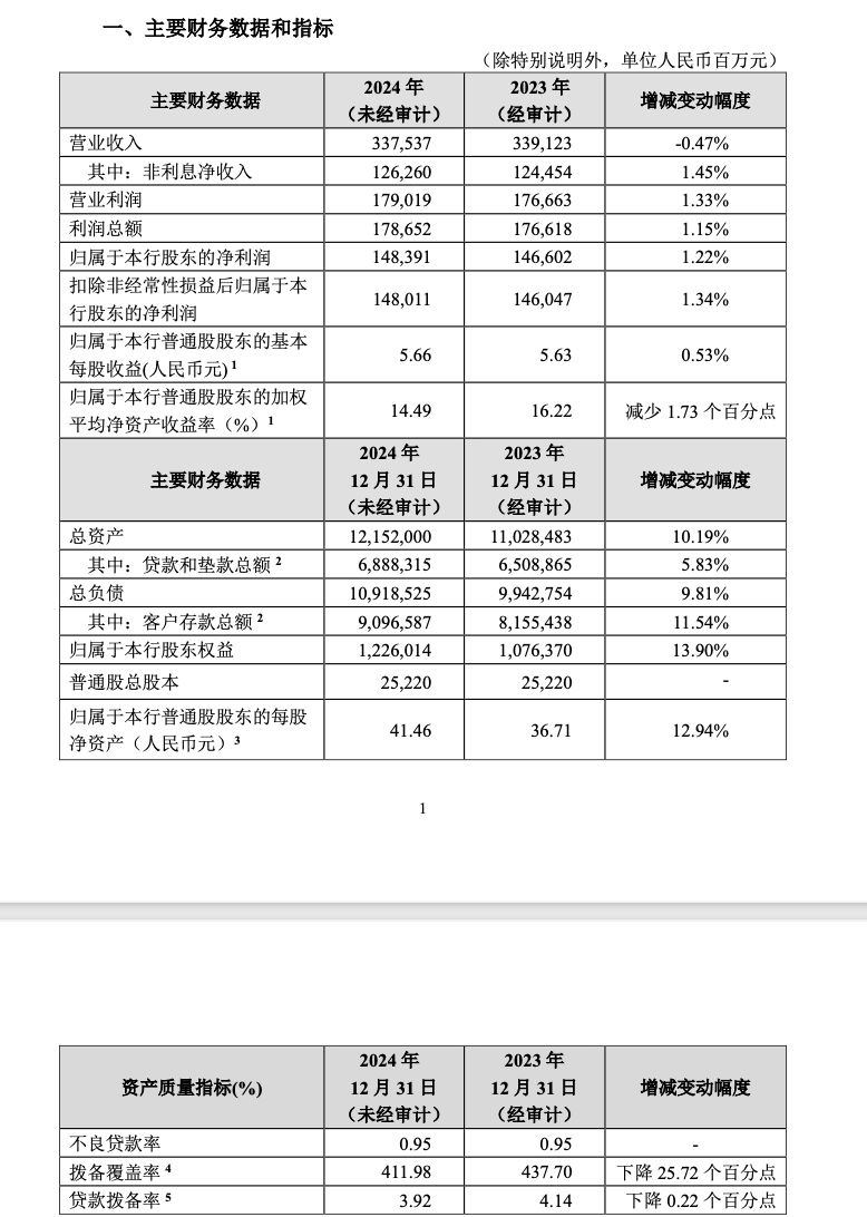 (招商銀行2024年主要財(cái)務(wù)數(shù)據(jù)和指標(biāo))