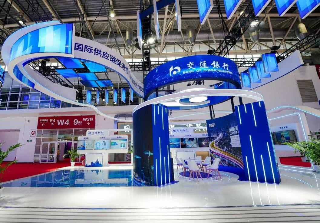 展會上,交通銀行在中國國際展覽中心(順義館)W4館核心展區(qū)打造“以鏈為媒,融通百業(yè)”主題展臺。展臺中央,LED天地屏滾動展示交通銀行在五篇大文章、供應鏈金融、跨境金融等核心領域的舉措與成果。此外,交行還聚焦金融服務先進制造鏈、清潔能源鏈、智能汽車鏈、數(shù)字科技鏈、健康生活鏈、綠色農(nóng)業(yè)鏈“六大鏈條”,設置鏈金融、云跨行、電網(wǎng)通三個專題展示板塊,推介特色鏈金融解決方案。