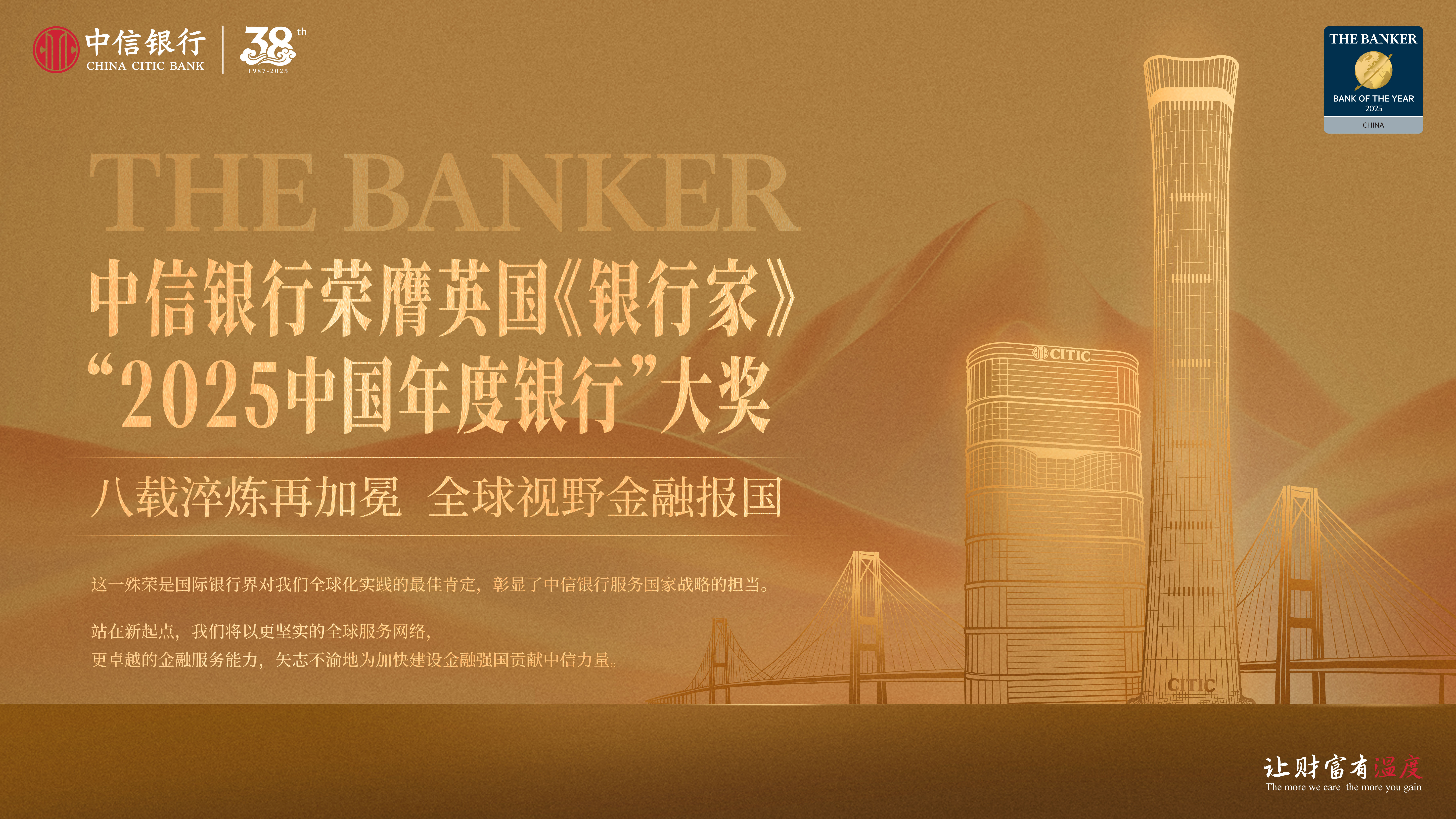 近日,一張漂洋過海且含金量十足的榜單“造訪”了中國銀行業(yè)。在這個(gè)被視為“銀行業(yè)奧斯卡”的2025年度評選中,中信銀行站上C位,榮膺“2025年中國年度銀行”。該份榜單是國際專業(yè)財(cái)經(jīng)媒體英國《銀行家》(The Banker)對于中信銀行近年來在服務(wù)實(shí)體經(jīng)濟(jì)領(lǐng)域一系列創(chuàng)新實(shí)踐的認(rèn)同與褒獎,在歷屆榜單中,工商銀行、農(nóng)業(yè)銀行等國有大行和幾家頭部股份制銀行也曾斬獲該年度銀行獎項(xiàng)。