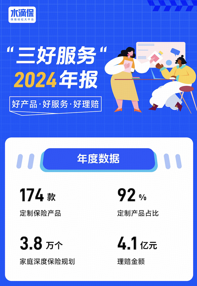 2024年,水滴保正式開啟品質(zhì)服務(wù)升級年,推出以好產(chǎn)品、好服務(wù)、好理賠為核心的“三好服務(wù)”,覆蓋產(chǎn)品定制、保險規(guī)劃、理賠服務(wù)等保險服務(wù)全流程。水滴公司合伙人、水滴??偨?jīng)理冉偉表示:“水滴保始終將用戶價值放在首位,致力于為用戶提供從購買到理賠等全流程的保險服務(wù)和流暢的體驗。未來,水滴保將持續(xù)深耕和迭代‘三好服務(wù)’,進(jìn)一步提升用戶體驗,不辜負(fù)用戶的每一份信任。”
