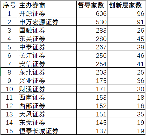 根據(jù)東方財(cái)富choice數(shù)據(jù)統(tǒng)計(jì),截至2021年10月8日,開源證券持續(xù)督導(dǎo)的新三板掛牌企業(yè)家數(shù)達(dá)到606家,排名全市場第一位。
