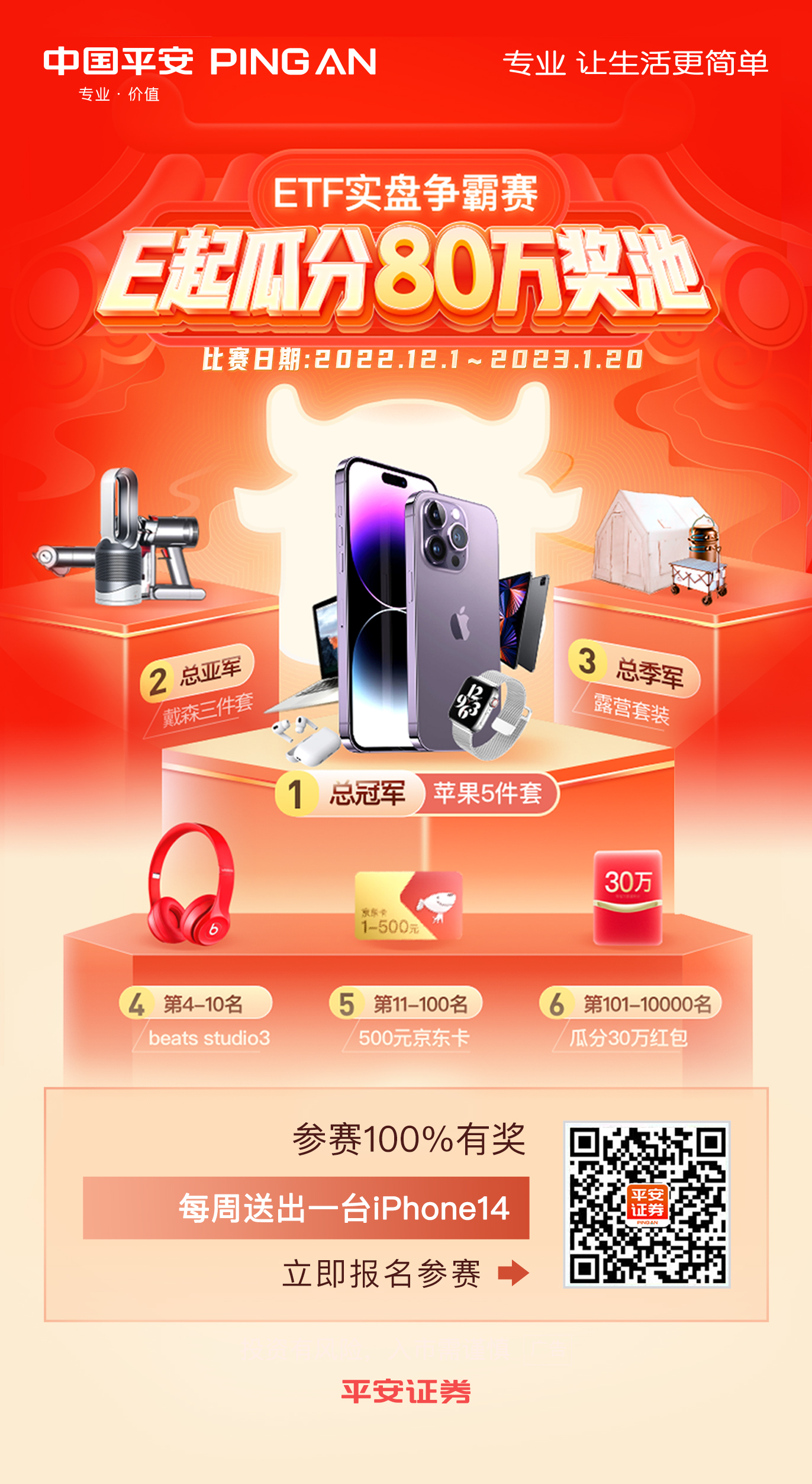 平安證券首屆ETF實(shí)盤大賽攜手八家基金公司火熱開啟!活動(dòng)時(shí)間將持續(xù)到2023年1月20日?,F(xiàn)可進(jìn)入平安證券App搜索“ETF大賽”或首頁ICON進(jìn)入活動(dòng)頁報(bào)名。