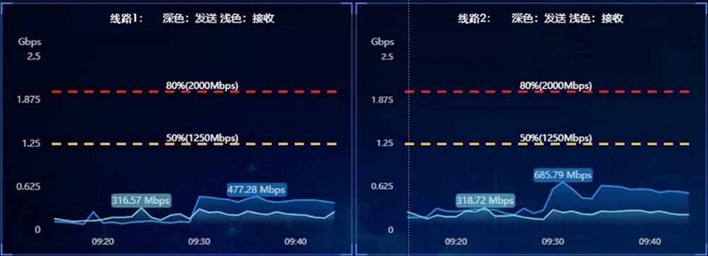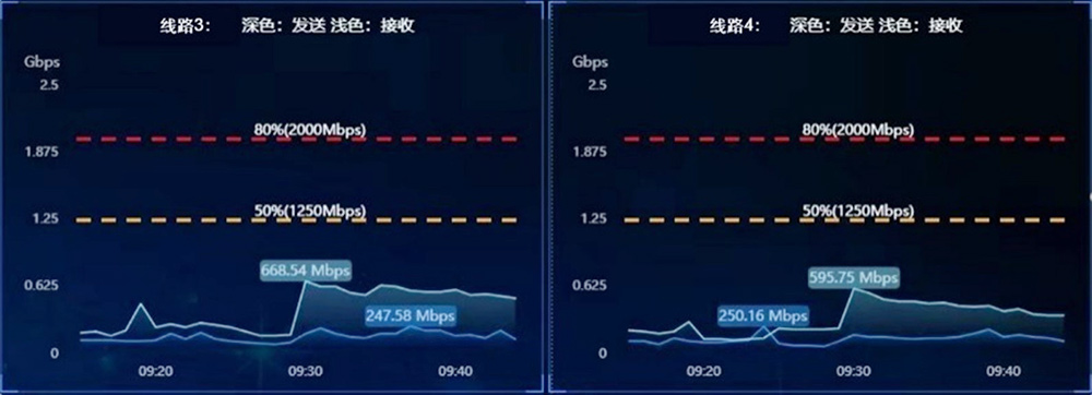 新一代骨干網(wǎng)通過SRv6和隨流檢測技術(shù),實(shí)現(xiàn)業(yè)務(wù)流量的智能調(diào)度,將骨干網(wǎng)打造成為高效負(fù)載均衡的骨干通道,徹底解決之前鏈路使用不均的問題,現(xiàn)網(wǎng)的4條不同線路之間的瞬時(shí)峰值差異從50%下降到20%以下,鏈路帶寬得到充分利用。