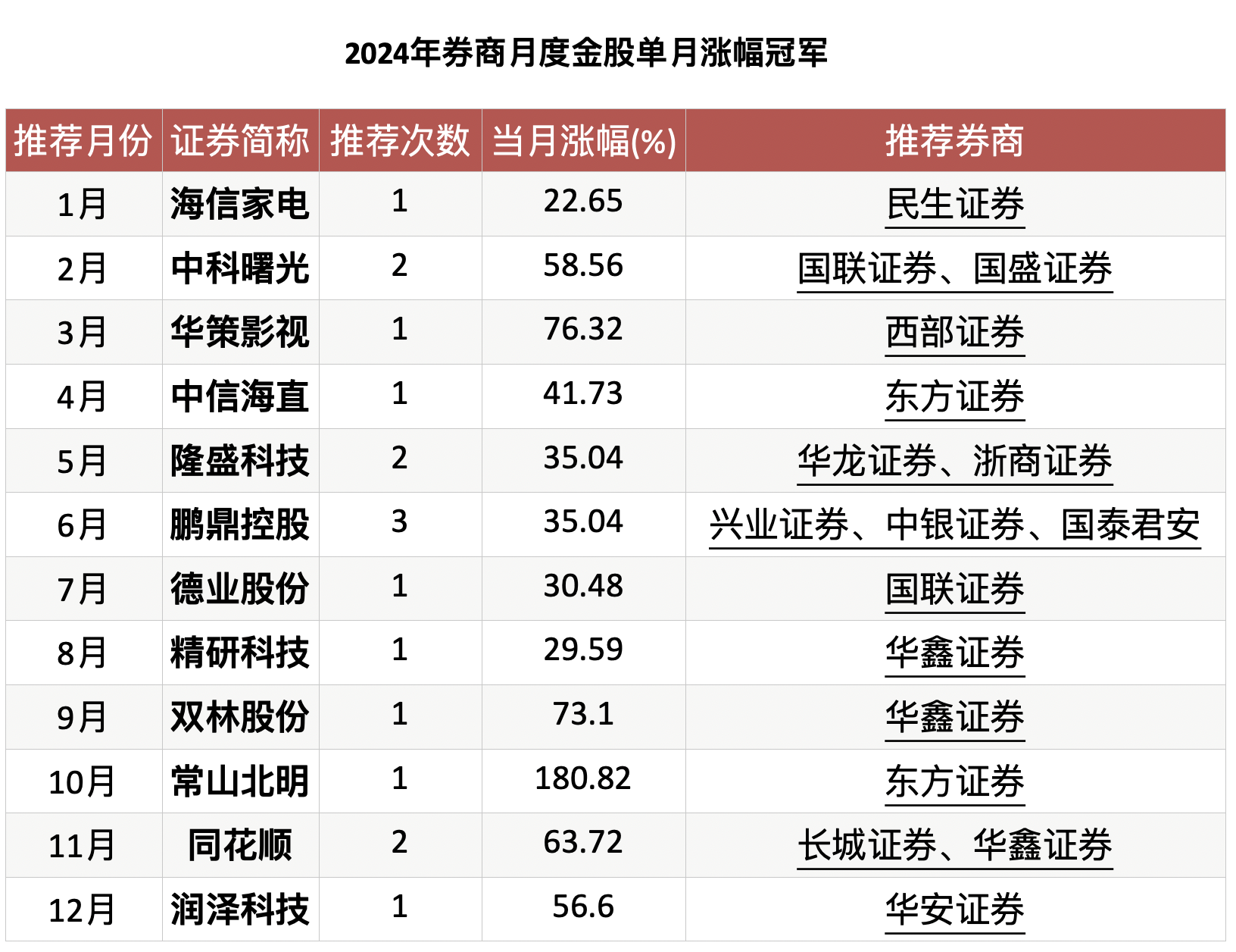 2024年券商月度金股單月漲幅冠軍 制圖/周尚伃于宏