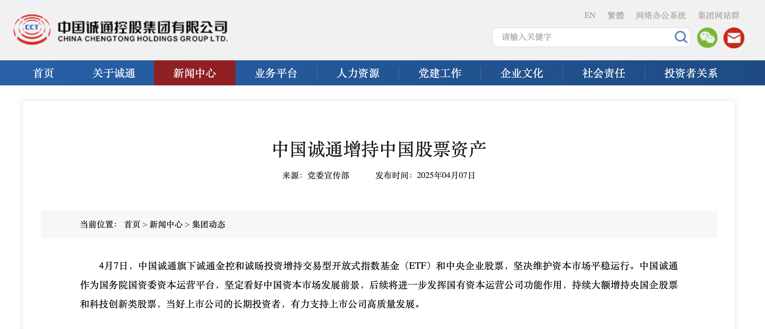 此外,4月7日至4月8日凌晨,中央匯金公司、中國誠通、中國國新等相繼宣布增持!