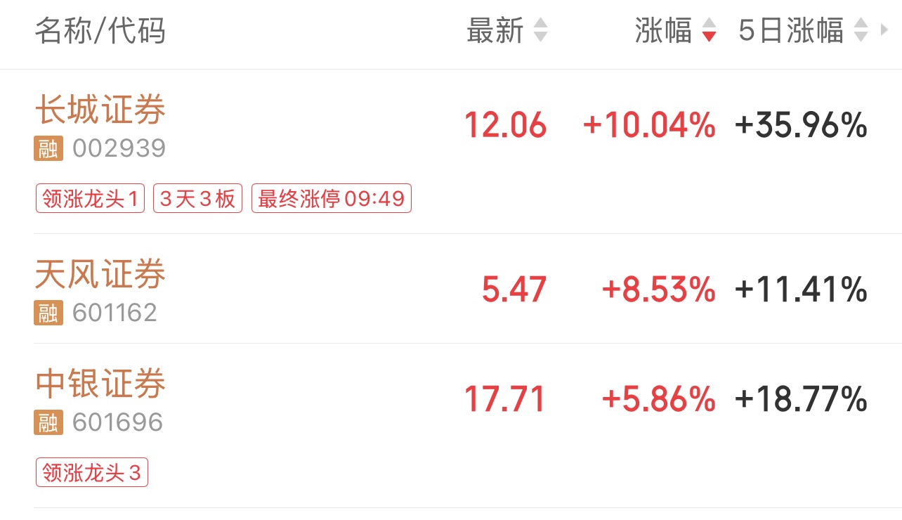 8月15日,同花順數(shù)據(jù)顯示,截至記者發(fā)稿時(shí),證券板塊整體漲幅已超過2%。其中,長城證券表現(xiàn)搶眼,漲停并實(shí)現(xiàn)“三連板”,天風(fēng)證券、中銀證券等熱門個(gè)股漲幅也均超過5%。