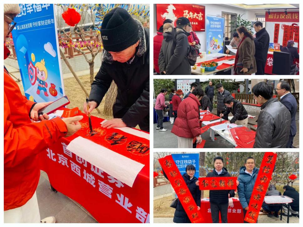 民俗融合傳理念,新春送福護(hù)平安。北京、福建、浙江、廣東、湖南、深圳等多地營(yíng)業(yè)部聯(lián)合屬地街道、社區(qū),舉辦新春防非主題民俗活動(dòng),將寫春聯(lián)、送福字等傳統(tǒng)民俗與防非反詐宣傳深度融合。投教人員精心創(chuàng)作兼具新春寓意與風(fēng)險(xiǎn)警示的宣傳春聯(lián),同步發(fā)放宣傳折頁(yè)及新春福袋,將“遠(yuǎn)離非法集資”“守護(hù)幸福家園”等理念隨著墨香融入千家萬(wàn)戶。