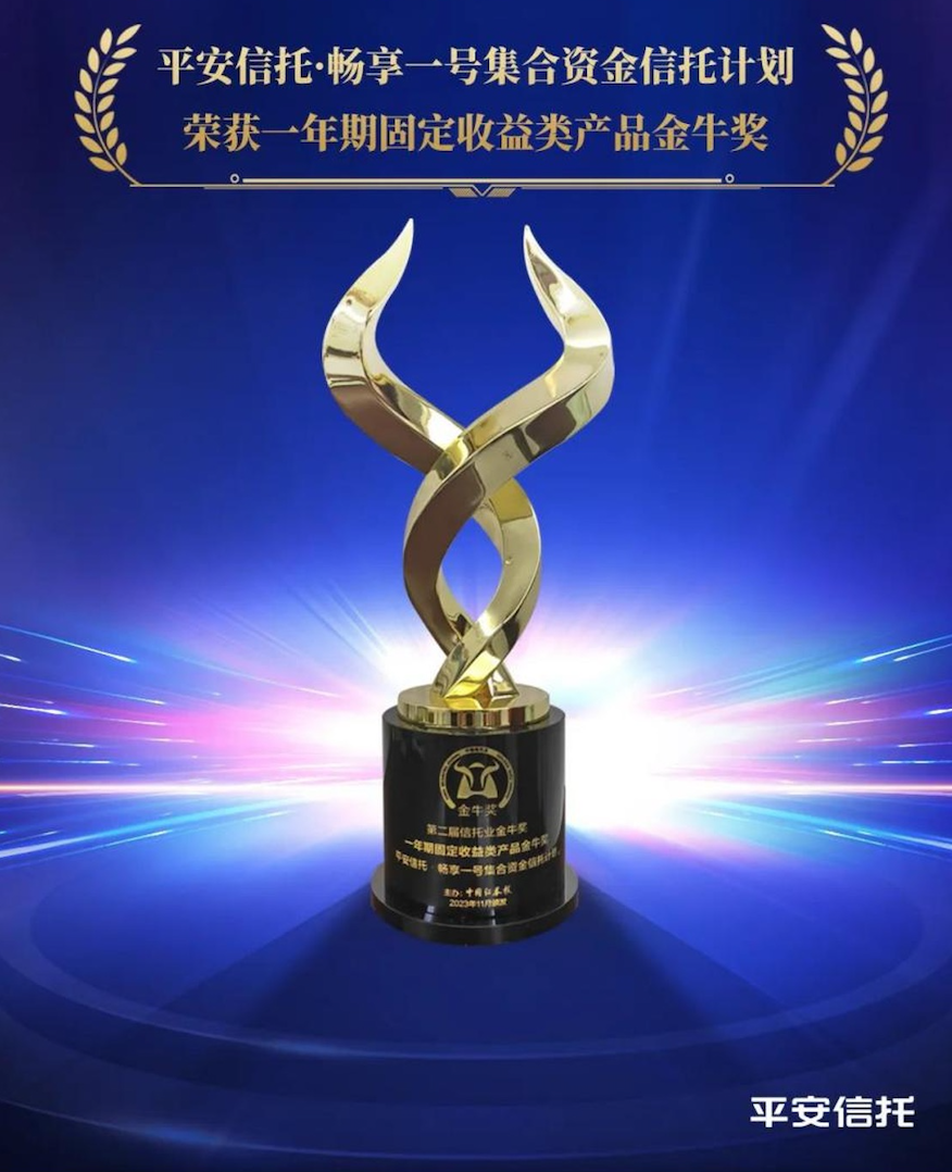 11月11日,由《中國證券報》主辦的“聚合力育新質啟新程——2023銀行保險業(yè)財富管理論壇暨第四屆銀行業(yè)理財金牛獎、第三屆保險業(yè)投資金牛獎、第二屆信托業(yè)金牛獎頒獎典禮”在北京成功舉行。平安信托·暢享一號集合資金信托計劃、平安信托·穩(wěn)利TOF1號集合資金信托計劃憑借優(yōu)異的市場表現(xiàn),分別斬獲“一年期固定收益類產品金牛獎”“一年期混合類產品金牛獎”兩項重磅大獎,平安信托也成為本次評選中獲獎產品最多的信托公司之一。