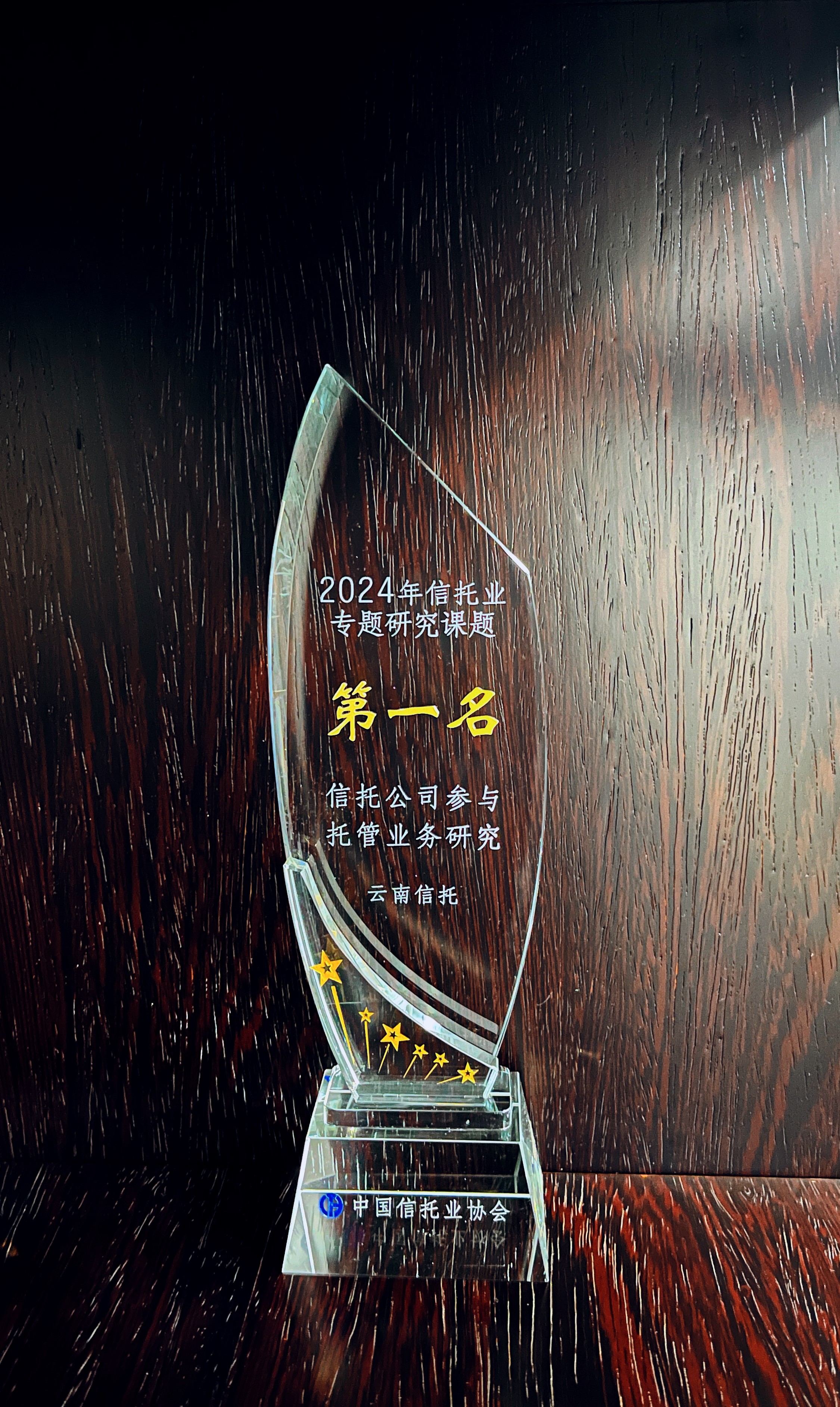 由云南信托牽頭的《信托公司參與托管業(yè)務(wù)研究》課題獲得2024年信托業(yè)專題研究課題第一名。