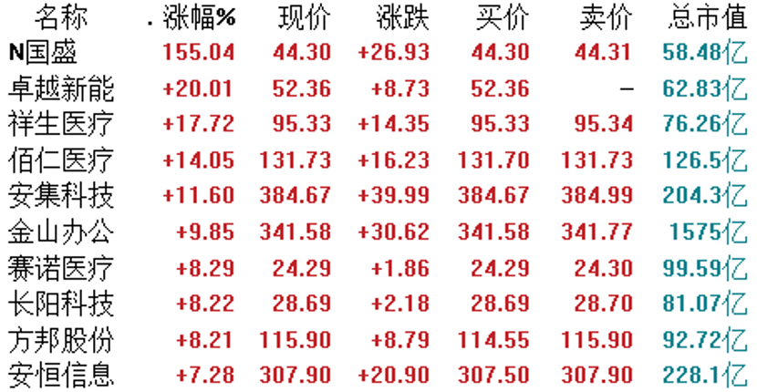 6月30日,兩市三大股指均高開高走,創(chuàng)業(yè)板指表現(xiàn)突出,漲逾2%??苿?chuàng)板方面,截至收盤,97只個股飄紅,19只個股收跌。同時,科創(chuàng)板迎來了第六十六批新股國盛智科。漲幅方面,新股國盛智科較發(fā)行價17.37元上漲155%。