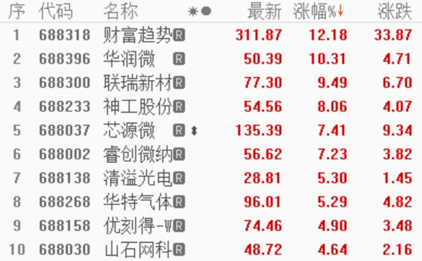 成交額方面,當(dāng)日科創(chuàng)板總成交額為317.09億元,較前兩日行情略有收縮,個股方面,華潤微、滬硅產(chǎn)業(yè)、財富趨勢、金宏氣體成交額超過10億元,四只個股近期市場表現(xiàn)均較為活躍。