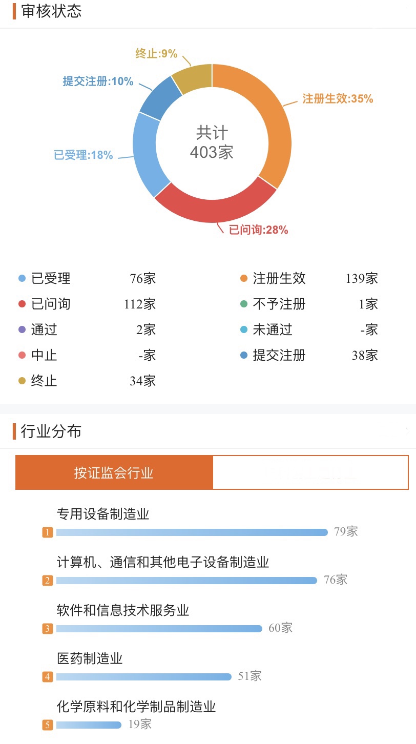 目前我們科創(chuàng)板成員的審核發(fā)行狀況是這樣的: