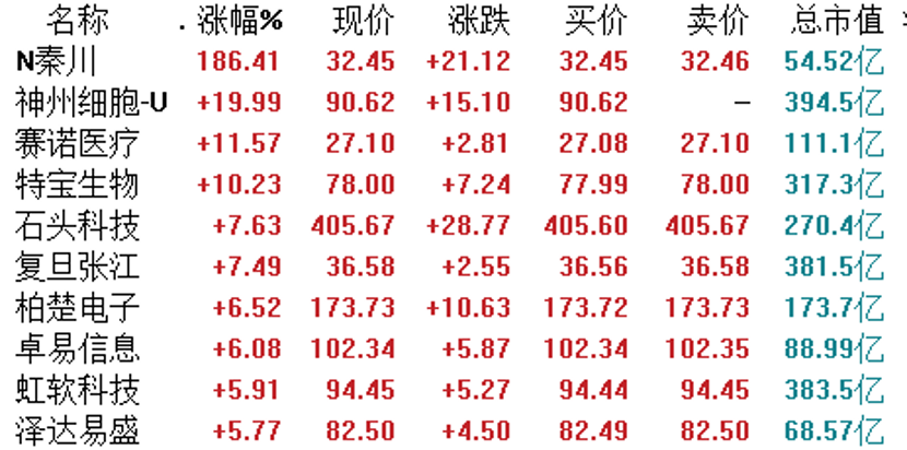 7月1日,兩市小幅高開,開盤后指數(shù)呈現(xiàn)滬強深弱走勢,在白酒、券商等權(quán)重股的集體走強帶動下,滬指漲逾1%,重回3000點大關(guān)??苿?chuàng)板方面,截至收盤,44只個股飄紅,71只個股收跌,2只個股收平。同時,科創(chuàng)板迎來了第六十七批新股秦川物聯(lián)。漲幅方面,新股秦川物聯(lián)較發(fā)行價11.33元大漲186.41%。此外,神州細(xì)胞漲停,賽諾醫(yī)療、特寶生物漲逾10%。跌幅方面,祥生醫(yī)療、海爾生物、博瑞醫(yī)藥、道通科技跌逾5%。