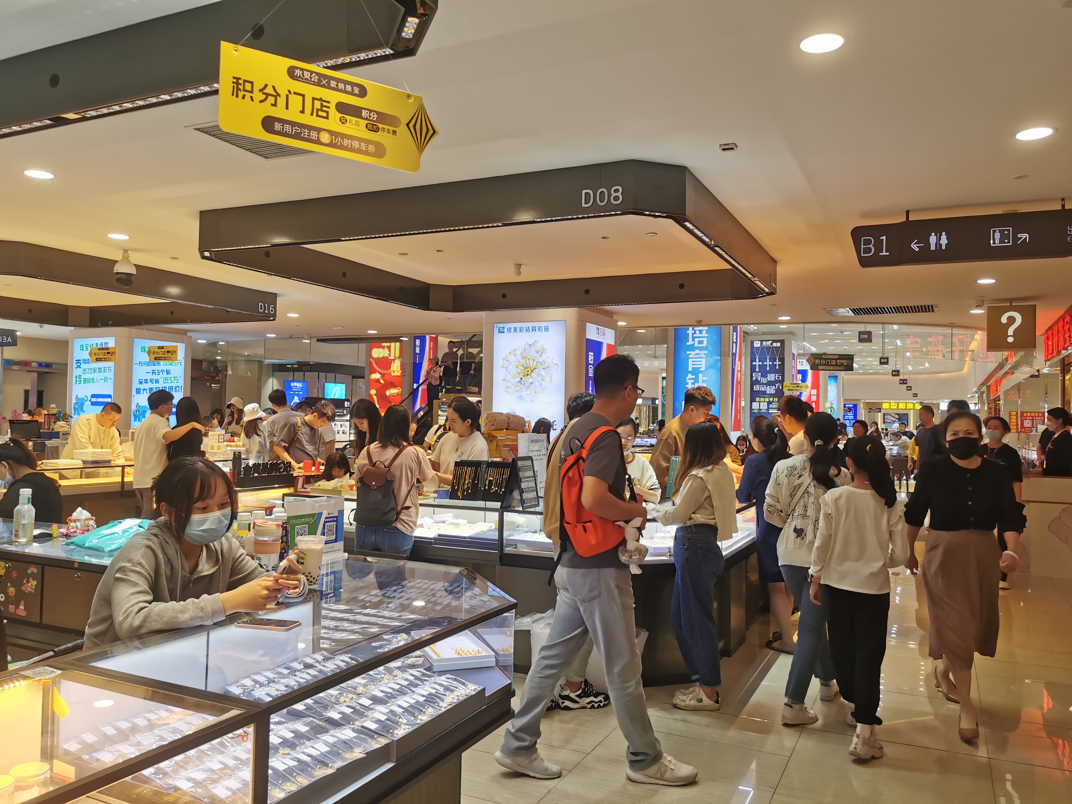 水貝市場的客流中,既有批發(fā)商,也有不少代購買手,還有一些是個人消費者。水貝壹號負一樓的金東珠寶柜臺銷售人員利先生表示:“防疫政策優(yōu)化后,市場人氣越來越旺。尤其自今年3月以來,黃金價格一天一漲,客流增長速度已經(jīng)遠遠超出我的預期。周一至周五工作日,市場里大部分是批發(fā)商,各地金店都是到水貝市場拿貨的,而周末來逛市場的則大部分是散客。”