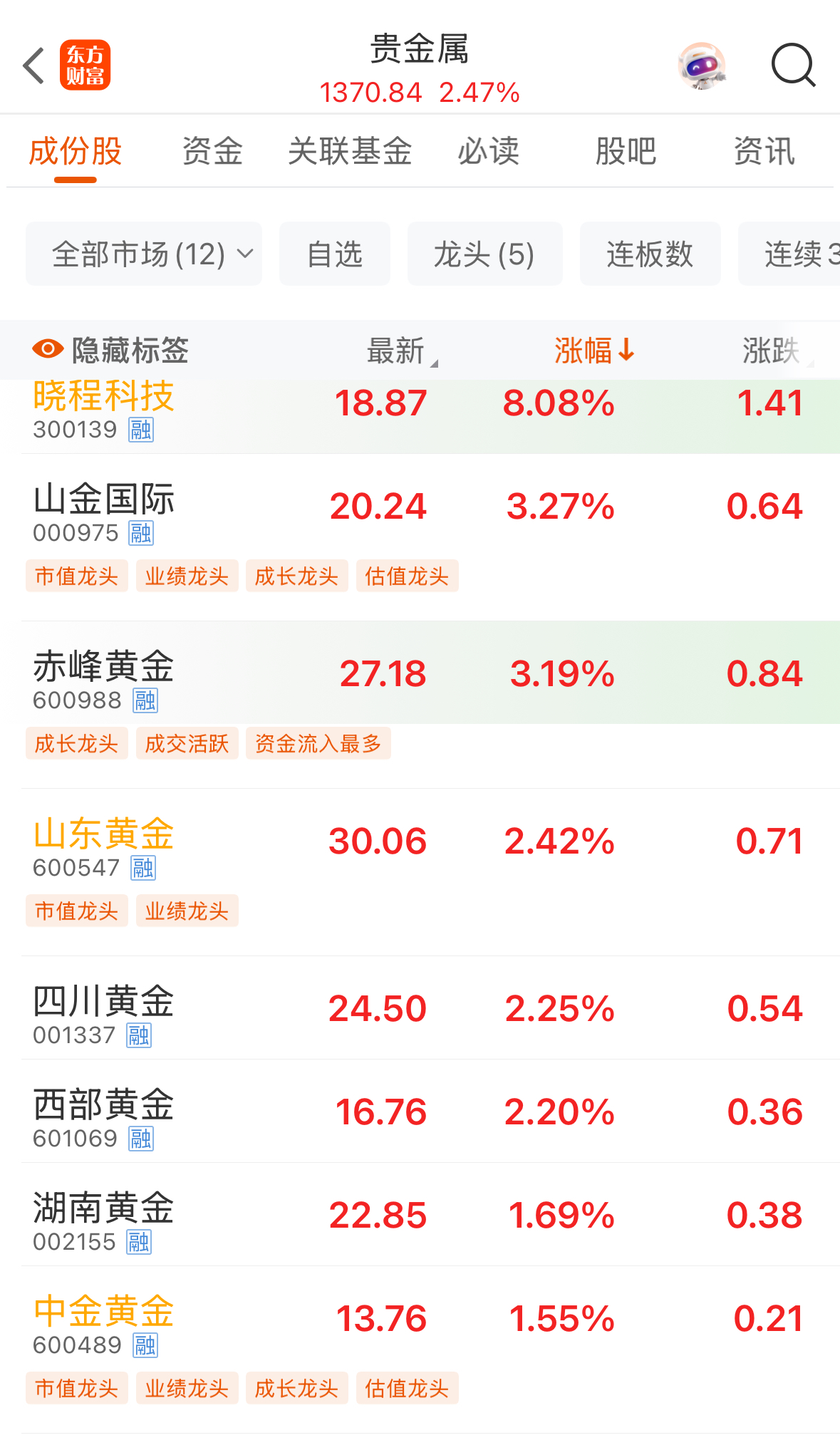 受金價(jià)回升提振,A股貴金屬板塊開盤競(jìng)價(jià)高開,截至記者發(fā)稿時(shí),貴金屬板塊指數(shù)上漲2.49%,成分股中曉程科技(300139)大漲8.08%;山金國(guó)際(000975)、赤峰黃金(600988)漲超3%。