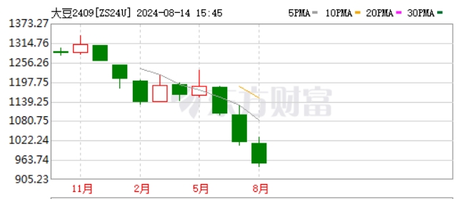 連日來,芝加哥商業(yè)交易所掛牌交易的大豆2409期貨合約(代碼:ZS24U)持續(xù)下跌,已跌破10美元/蒲式耳,目前運(yùn)行在9.44美元/蒲式耳附近。