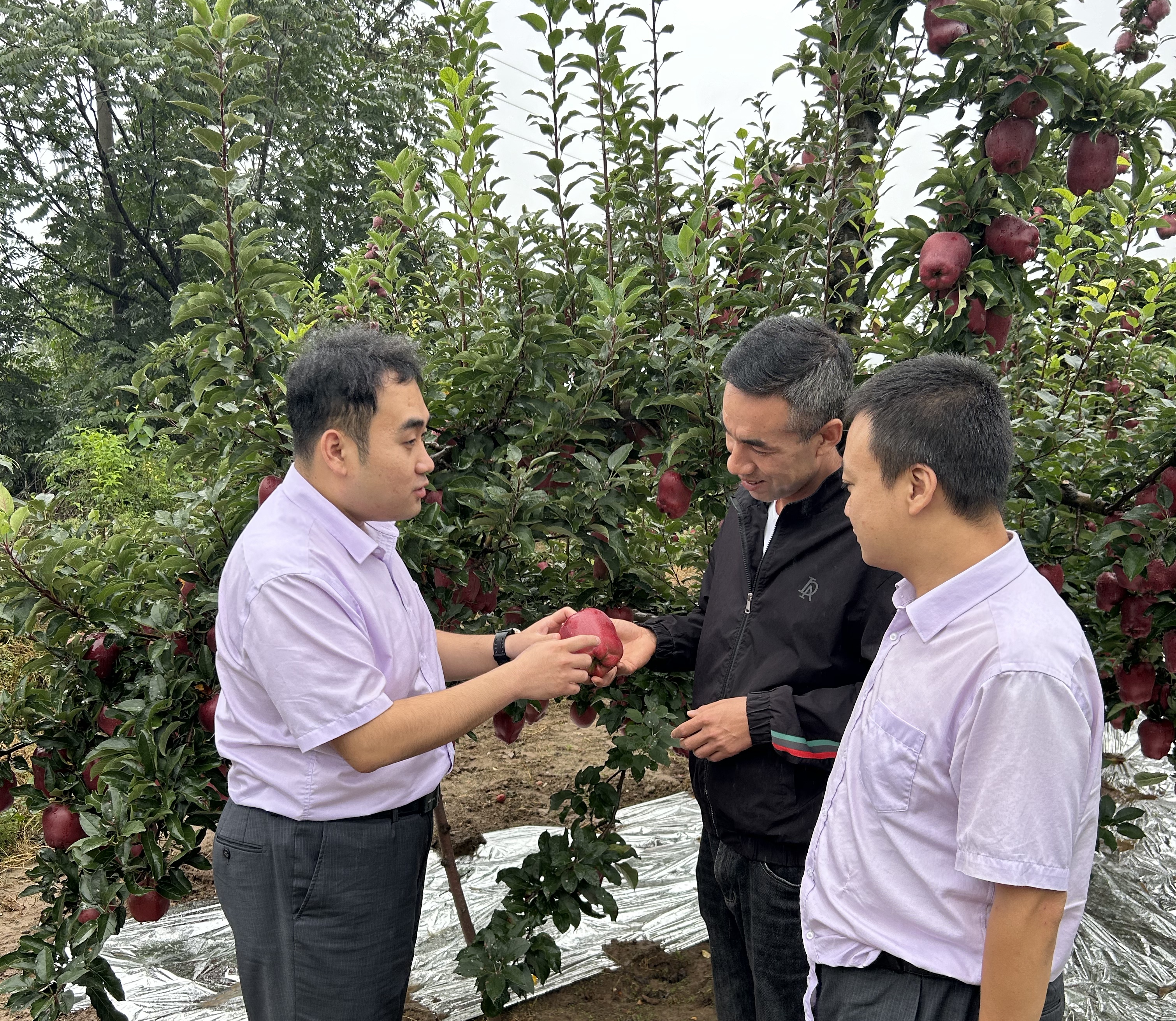 農(nóng)行天水分行客戶經(jīng)理實(shí)地走訪種植戶,調(diào)研蘋果生長、采摘情況農(nóng)行天水分行供圖