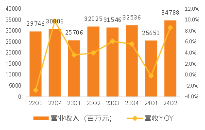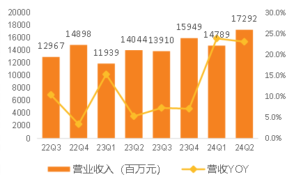 2022年11月30日ChatGPT橫空出世,全球科技產(chǎn)業(yè)新一輪大變革拉開序幕,通信行業(yè)作為基礎(chǔ)設(shè)施板塊,隨著2023年底全球AI軍備競賽的展開,經(jīng)營形勢全面向好。從營業(yè)收入看,通信設(shè)備2024Q1和Q2營收分別同比增長5.9%和8.7%,行業(yè)結(jié)束了10個季度增速下降趨勢和2023Q3的負(fù)增長,2023Q4開始反轉(zhuǎn)恢復(fù)增長3%,并且2024年Q1和Q2加速增長,反映行業(yè)新舊動能切換——AI成為行業(yè)增長新引擎,預(yù)計趨勢有望延續(xù)。