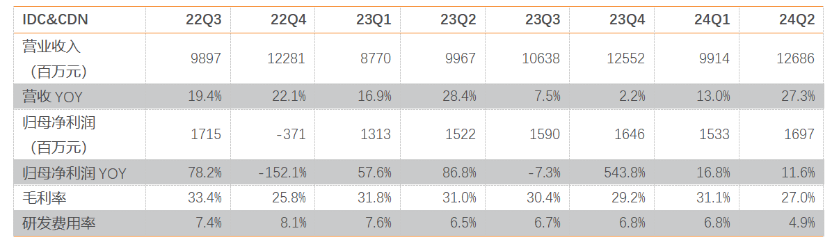 表2:IDC&CDN子行業(yè)財務(wù)數(shù)據(jù)匯總