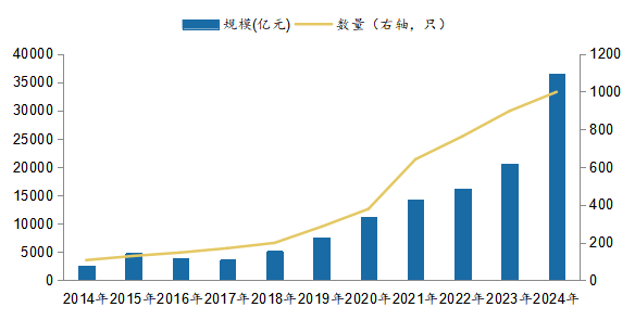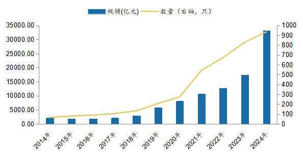 圖4:境內(nèi)ETF產(chǎn)品規(guī)模數(shù)量變動統(tǒng)計