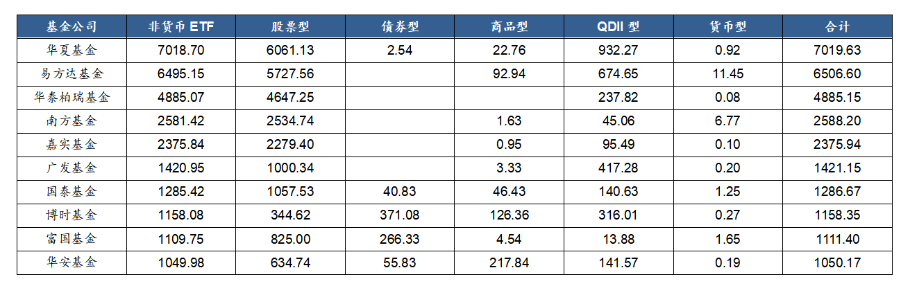 表2:基金公司ETF規(guī)模統(tǒng)計(億元)