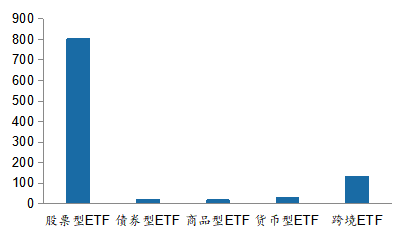 圖5:境內(nèi)權(quán)益類ETF產(chǎn)品基于資產(chǎn)類型的分布統(tǒng)計